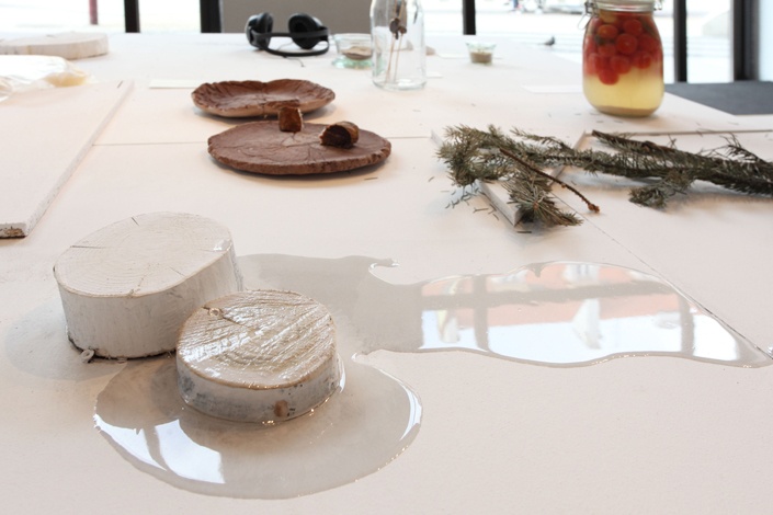Karolina Zajączkowska: Ta grupa cyklicznie wydaje specjalne kolacje, każdej z nich przyświeca inny motyw przewodni. Najnowszym, czwartym projektem jest Ziemia i Woda, którego finał odbędzie się 22 kwietnia w Milejowym Polu pod Wrocławiem, gdzie pod ziemią zostanie wydana kolacja. Sam projekt trwa kilka miesięcy i organizowany jest na kilku płaszczyznach i takim przedłużeniem jest właśnie wystawa. W galerii FTT zyskuje przestrzeń, w której może pokazać to, co rzeczywiście składa się na proces myślenia o tym, jak się projektuje kolację czy też sam smak. Na wystawie możemy obejrzeć próbki kulinarne, ceramiczne i wszystkie inne aspekty, które dana podgrupa w FTT tworzy w ramach tego projektu. Daje to unikatowy wgląd w to, co pozostaje zwykle zamknięte w piwnicy czy na zapleczach w kuchni.