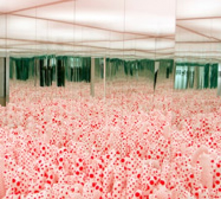 The exhibition includes the artist’s most relevant works: the Infinity Nets from the fifties and the Accumulations sculptures; her performances and happenings from the sixties, like Self-Obliteration, and recent paintings and installations (Infinity Mirrored Room – Filled with the Brilliance of Life, 2011, and The Obliteration Room 2002-2013). The building of the Museum and the trees surrounding it will also be covered with red polka-dots, Kusama’s landmark.