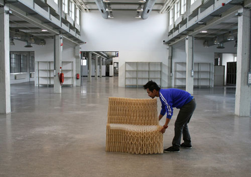 Co powiecie na jedzenie obiadu przy pomocy pałeczek, a następnie użyciu ich w budowie mebli, na których możecie odpocząć? Na zdjęciach widać sofę wykonaną z 8 tysięcy pałeczek, zaprojektowaną przez Yuya Ushida. Jest to rozkładane siedzisko przekształcane z fotela w kanapę i z powrotem – zależnie od potrzeb i ilości osób mających znaleźć na nim miejsce do siedzenia. Projekt został zaprezentowany na niedawno zakończonej wystawie wystroju wnętrz – „imm cologne 2011”. Zbudowanie mebla, czyli przycinanie każdej pałeczki oddzielnie w sumie w czterech różnych długościach – aby otrzymać właściwe kąty - zajęło trzy miesiące. Pierścienie i złączki zastosowano przy łączeniu elementów kanapy tak, aby istniała możliwość rozkładania i składania mebla. Wreszcie cel został osiągnięty: na sofie mogą usiąść jednocześnie trzy osoby o wadze do 70kg każda. W ten właśnie sposób pałeczki do jedzenie zyskały drugie życie oraz nowe znaczenie w designie odpowiadające potrzebom człowieka.