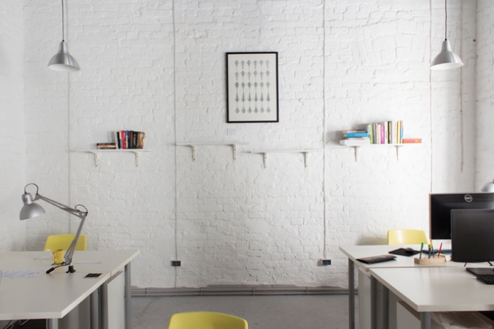 Na 50 metrach kwadratowych, ponad stuletniej kamienicy, jest miejsce dla sześciu osób. To przestrzeń, która daje wolność i swobodę – bez recepcji, pilnujących pań czy panów – przestrzeń, którą dysponują ludzie, kiedy chcą, w zależności od potrzeb. Wejście z podwórka, drewniane rolety zamykane na noc, odkryta, pomalowana na biało cegła, industrialna szklana ściana, tworzą niepowtarzalny klimat – trochę domowy, ale motywujący do działania. Do tego kuchnia, łazienka, hamaki, mini siłownia – prawie jak w Google.
