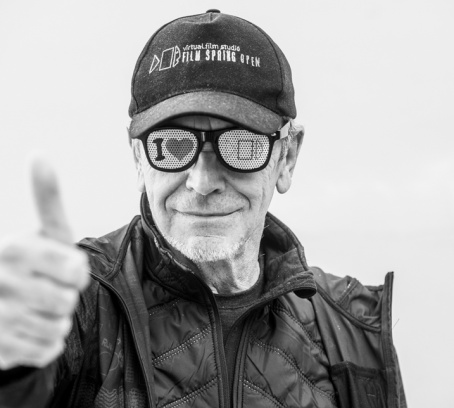 Zdjęcie główne: Sławomir Idziak w obiektywie Filipa Błażejowskiego (Film Spring Open, Work Shop 2023)