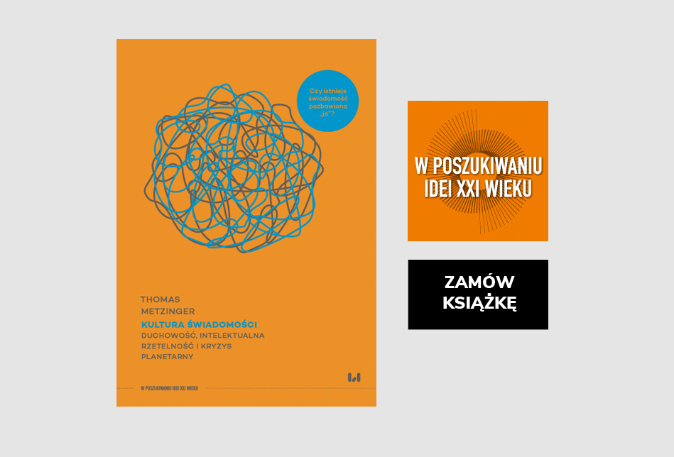 Punktem wyjścia mojego spotkania z filozofem Thomasem Metzingerem jest jego książka pt. „Kultura świadomości. Duchowość, intelektualna rzetelność i kryzys planetarny”, której polskie wydanie ukazało się nakładem Wydawnictwa Uniwersytetu Łódzkiego w ramach serii „W poszukiwaniu idei XXI wieku”. Ta krótka publikacja mocno mną wstrząsnęła. Porusza tematy niezwykle aktualne i potrzebne, które jednak nie przebijają się do głównego nurtu debaty publicznej. Nikt przecież nie chce słyszeć o zagładzie; o tym, że jako ludzkość możemy zawieść; że niszczymy środowisko w tempie niespotykanym dotąd w historii – i że... w gruncie rzeczy musimy szykować się na najgorsze. Czy jednak tylko o tym jest ta książka? Dla mnie to przede wszystkim apel o uczciwość wobec samego siebie i swoich wyborów. O spojrzenie na świat oczami prawdy – i rzetelne jej poszukiwanie, nawet jeśli jest bolesna i nie da się jej już zmienić. To także zaproszenie do refleksji nad tym, czy jako ludzkość jesteśmy jeszcze w stanie stworzyć wspólnotę wsparcia w trudnym czasie – i jak moglibyśmy to zrobić.