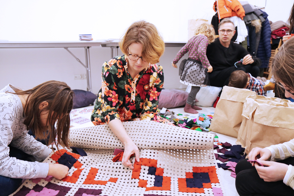 Joanna Rusin podczas warsztatów w pracowni. Zdjęcie Kuba ŚwięcickiZ zawodu jestem projektantem dywanów i obiektów tkackich, a ostatnio także nauczycielem akademickim.